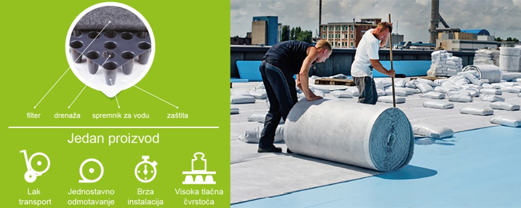 Idealan sistem za ugradnju sustava zelenog krova sa minimalnim zahtjevima za održavanjem, koji uključuje sedume, trave i drugo nisko raslinje. Pogodno za ravne i kose krovove do 45° nagiba.